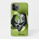 Green iPhone case, with graphics of a ripped hole, in the middle, and a creepy black and white clown face peeking out. Personalise the black text to suit your needs.
