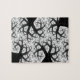 This awesome puzzle design was created from a fractal. It resembles a cluster of black trees with black trunks and twisted branches against a white moonlit night sky. It looks as though you are lying on the ground looking up at the sky from within a dense and spooky forest. Let your imagination run wild.