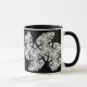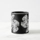 This haunting mug design was created from a fractal. It resembles a cluster of black trees with black trunks and twisted branches against a white moonlit night sky. It looks as though you are lying on the ground looking up at the sky from within a dense and spooky forest. Let your imagination run wild. A ringer style mug is shown here but the design is also available on other styles of mug including travel mugs and frosted glass mugs.