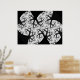 This haunting print was created from a fractal. It resembles a cluster of black trees with black trunks and twisted branches against a white moonlit night sky. It looks as though you are lying on the ground looking up at the sky from within a dense and spooky forest. Let your imagination run wild. The design is available in several different sizes, the largest of which is shown here.