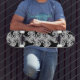 This haunting skateboard was created from a fractal. It resembles a cluster of black trees with black trunks and twisted branches against a white moonlit night sky. It looks as though you are lying on the ground looking up at the sky from within a dense and spooky forest. Let your imagination run wild. An awesome deck to show off your latest tricks on.