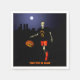 Not into trick-or-treating on Halloween? How 'bout a little pickup game of hoops? Features a skeleton dribbling a Jack O'Lantern in pace of a basketball. The skeleton is wearing a t-shirt emblazoned with the number "7" and team name "GHOULS." The moon hovers over a dark city skyline in the distance. Customise by adding your own text.