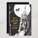 An old fashioned style black and white haunted house image, complete with full moon, bare tree and ravens is the feature on the front of this Halloween party invitation. The text on the front says "It's a ghoulish night for a party!" in orange. The solid black back has plenty of room for your party information. Easy to customise, and, if you'd like to change the font, size, location or colour of the text, you may do so by choosing "Customise it".