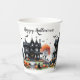 Get into the Halloween spirit with these charming paper party cups! Featuring "Happy Halloween" in a cute script typography at the top on both sides, the design showcases three black haunted houses adorned with pops of orange from pumpkins, jack-o-lanterns, and spooky trees. The classic black and white colour scheme, combined with the whimsical script, strikes the perfect balance for both adult and kids' Halloween celebrations. These cups are designed to bring a touch of fun and festivity to your costume party or spooky event, making them a delightful addition to any Halloween gathering! Haunted House Halloween Party Paper Cups Fun Festive Spooky Black Orange White Vintage House