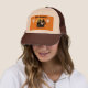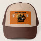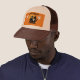 Haunted House Halloween movie night party trucker hat! Brown and beige hat, orange and black haunted house, ghost in haunted house and flying around!