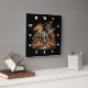 A clock with a cool and spooky illustration of a wooden haunted house. Surrounded by big orange pumpkins and trees with orange leaves. Windows with orange lights add a nice glow. Fun Halloween design.