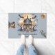 This is a cute Halloween doormat featuring a haunted mansion surrounded by ghosts, bats, and other spooky creatures. You can customise the default text "THE HAUNTED MANSION WELCOMES YOU." You can also customise the main image, the haunted house.