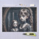 This chilling artwork depicts a hauntingly eerie scene where a young girl stands before a mirror, cradling a spectral doll in her arms. The reflection in the mirror reveals a disquieting juxtaposition of innocence and dread. The girl’s gaze is unsettling, filled with an unnerving calm that contrasts sharply with the doll's ghostly presence. The scene is enveloped in shadowy tones and subtle, eerie details that heighten the sense of unease. The mirror, acting as a portal to a realm of unsettling mystery, captures a moment of haunting stillness where the boundary between reality and the supernatural blurs.