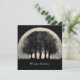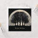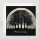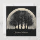 A striking and atmospheric digital illustration featuring the dark silhouettes of several bare, skeletal trees positioned directly in front of an enormous, luminous full moon. The scene is set in a dark, nocturnal landscape with a vast, starry sky filling the background. Small, dark shapes resembling birds or falling leaves are scattered around the base of the trees, adding to the sense of quiet mystery. The muted, vintage-toned color palette and high-contrast composition create a powerful, melancholic, and ethereal mood, with the text "Winter Solstice"