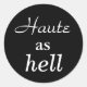 This super cute, HAUTE AS HELL, sticker makes a great decoration for a present, gift or envelope. It is also perfect for decorating an appetizer, dessert or food favour. Attach two of these stickers to a toothpick and use to decorate hors d'oeuvres.