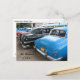 Customisable postcard with image of some old vintage American cars parked in a row in a street of Havana, Cuba.