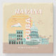 A vibrant and nostalgic illustration of Havana, Cuba, featuring colourful colonial buildings, the iconic Capitolio, and a classic vintage car. Set against a dreamy sunset with birds in flight, the design captures the lively spirit and timeless charm of the city.