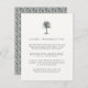 Island chic wedding guest information card features a vintage etched style palm tree illustration in blackened hunter green. Replace the sample text with the key details of your wedding celebration.