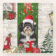 Havanese Dog Christmas sitting outside decorated home with Christmas wreath, Christmas tree is a perfect Christmas gift idea for dog lovers.