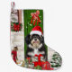 Havanese Dog Christmas sitting outside decorated home with Christmas wreath, Christmas tree is a perfect Christmas gift idea for dog lovers.