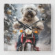 Havanese Dog Riding Motorcycle Christmas Square Wall Clock