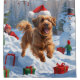 A cheerful Havanese runs happily through the snowy winter scene, wearing a festive red Christmas hat. This playful design highlights the breed’s fluffy coat, affectionate personality, and joyful spirit while capturing the warmth and magic of the holiday season. A heartwarming moment full of festive charm.