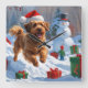Havanese Running in Snow with Christmas Hat Square Wall Clock