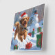 A cheerful Havanese runs happily through the snowy winter scene, wearing a festive red Christmas hat. This playful design highlights the breed’s fluffy coat, affectionate personality, and joyful spirit while capturing the warmth and magic of the holiday season. A heartwarming moment full of festive charm.
