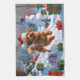 Havanese Running in Snow with Christmas Hat Tea Towel
