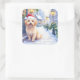 Havanese Snowy Village Walk Santa Hat Christmas Square Sticker