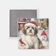 This festive design captures the joyful spirit of the holiday season, featuring an adorable pup wearing a Santa hat. The dog is nestled in a winter wonderland, complete with a snowman, a decorated Christmas tree, and beautifully wrapped presents. Snowflakes gently fall, adding a magical touch to the scene, while the vibrant colours of the holiday decorations create a warm and cheerful atmosphere.