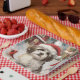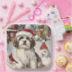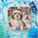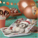 This festive design captures the joyful spirit of the holiday season, featuring an adorable pup wearing a Santa hat. The dog is nestled in a winter wonderland, complete with a snowman, a decorated Christmas tree, and beautifully wrapped presents. Snowflakes gently fall, adding a magical touch to the scene, while the vibrant colours of the holiday decorations create a warm and cheerful atmosphere.