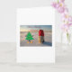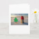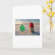 Gnome on the beach with a Christmas Tree on a Christmas Card to wish your family and friends a Beachy Christmas