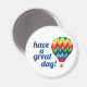 Cheery magnet with a colorful hot air balloon illustration and the message "have a great day!" Great novelty gift.