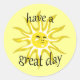 A graphic sun by artist/designer Charmaine Paulson with the text “have a great day” on a sticker.