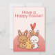 Have a Happy Easter Adorable Kawaii Bunny Love Red Holiday Card
