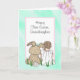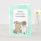 A sweet hand drawn baby girl sitting next to a big stuffed bunny. This card says granddaughter but you can personalise the text with a name or different family member.