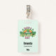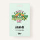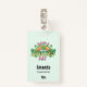 Name tag with a St. Patrick's Day themed image. A retro grunge style design which says: Have a lucky day. With a colourful rainbow behind. Words written in a fat rounded retro style vibe. Pink and green colours.