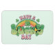 Flexible Magnet with a St. Patrick's Day themed image. A retro grunge style design which says: Have a lucky day. With a colourful rainbow behind. Words written in a fat rounded retro style vibe. Pink and green colours.