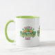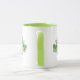 A mug with a St. Patrick's Day themed image. A retro grunge style design which says: Have a lucky day. With a colourful rainbow behind. Words written in a fat rounded retro style vibe. Pink and green colours.