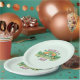 Paper plates with a St. Patrick's Day themed image. A retro grunge style design which says: Have a lucky day. With a colourful rainbow behind. Words written in a fat rounded retro style vibe. Pink and green colours.