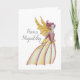 Send some words of encouragement - and magic! - with this fantasy themed greeting card. Card features a hand drawn fairy with beautiful golden wings and the message "Have a magical day" inscribed beside her. Blank on the inside.