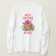 I love this shirt. I had written to the artist asking her if this picture was available on a shirt, and she wrote me back telling me where I could find the shirt. These shirts can be custom made to have a different saying. I loved this saying and went with it. The artist wrote me back later to tell me that she had seen my order go through. How's that for service? Pretty special. It's just as displayed. Perfect!