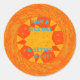 Red/Orange: The dominant colour in the central circle and background patterns, creating a warm and energetic atmosphere that evokes feelings of joy.