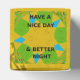 "HAVE A NICE DAY" and "& BETTER NIGHT": These phrases serve as the central message, delivering positive wishes that resonate with viewers.
