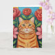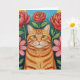 A sweet birthday card with cat pun, "Have a paw-some birthday!" Front has a cute orange cat with folk art red and pink flowers.