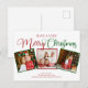 Have a Very Merry Christmas 3 photo postcard with beautiful calligraphy in red and green. These modern holiday three family photograph postcards features gorgeous script and your name underneath the festive square picture collage.