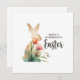 Beautiful "Have a wonderful Easter" design depicts a watercolor illustration of an Easter rabbit silhouette with Easter tulips overlay. This pretty Easter design makes a nice gift for mom, friend, coworker, and anyone else important in your life. Let them know you are thinking of them with this elegant Easter bunny design.