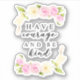 Motivational sticker featuring a positive quote and floral wreath that was hand painted with watercolor. The quote says "Have courage and be kind."