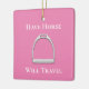"Have Horse Will Travel" Stirrup Iron on Pink Ceramic Ornament