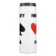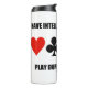 Showcase your wry duplicate bridge sense of humour and attitude with this thermal tumbler featuring the four card suits along with the following bridge advice: "Have Intellectual Vitality Play Duplicate Bridge". Memorable bridge advice thermal tumbler for any duplicate bridge player or teacher!
