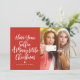 Cute and modern holiday Christmas card features the phrase "have your selfie a merry little Christmas" in a handwritten script typography on a red background. Your selfie photo is displayed on the opposite side.