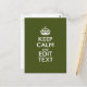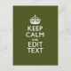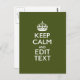 Your Keep Calm saying on a fine custom olive green accent colour style decor. A personalised Keep Calm style saying on a one of a kind gift. Humourous or whimsical try on your creative words on two editable lines of text. Remember to use CAPITAL letters for best results.