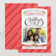 Hand lettered "christmas" with your photo, hand painted watercolor holly and background stripes.