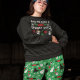 This wonderfully creepy graphic sweatshirt offers up a goth style spin on traditional Christmas motifs with snowflakes and star shapes formed out of white skeleton bones, skull shaped Christmas ornaments and holly berries, black spooky Christmas wreaths and trees and ghoulish ornaments and snowmen. My illustrations are in green, grey, red, and white. My graphics accompany the slogan HAVE YOURSELF A SPOOKY LITTLE CHRISTMAS spelled out in distressed white skull and bone shaped letters.